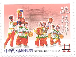 臺灣的傳統藝陣,在常民的文化生活裡,扮演著一個重要角色,在舊時農業社會裡,它是迎神賽會酬謝神明恩典的儀禮,多采多姿的表演是常民大眾的主要娛樂。明清之際,先民渡海來臺,也將民間藝陣同時傳遞來台灣,歷經4百年的衍演發展,各種藝陣不只保存傳統民族文化的精神,也呈現著本土的風貌。臺灣在移民初期治安不良,有些藝陣就成為地方自衛組茲將本組郵票圖案簡介如下: