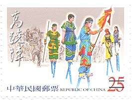 藝陣是民間廟會喜慶不可或缺的民俗表演藝術,在工業社會的衝擊下,儘管它已逐漸從人們的生活中褪色,但任何時候看到這項傳統民俗,都能令人勾起親切的童年記憶。為了讓在地人對在地生活有更深一層的體認,本公司特印製「臺灣民間藝陣郵票」1組4枚。