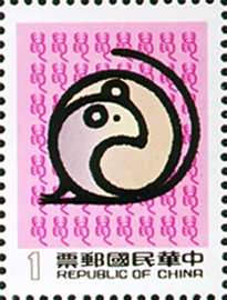 73年歲次甲子,年肖屬鼠:以老鼠圖案印製郵票,其面值分1元及10元2種;小全張(78x102)則就上述郵票各2枚組成。